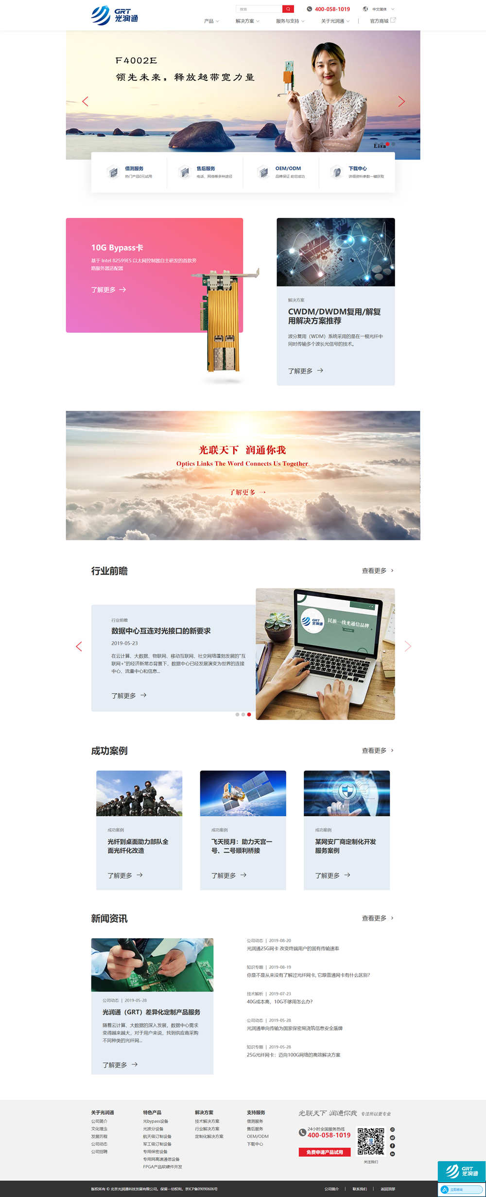 GRT(北京光润通科技发展有限公司,简称光润通,英文缩写GRT)公司总部位于北京中关村高科技园区,起始于2008年4月,GRT凝聚了一批研发均龄超过15年的资深研发人员,在光纤产业高速发展,光纤到户的大背景下,光润通始终坚持着质量固企、创新兴业的战略方针,一步一个脚印的成长为目前国内知名的集研发、生产、营销于一体拥有自主知识产权和自主品牌的高科技光纤企业。